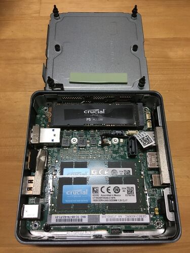 購入経緯他色々はこっちに。【NUC】BOXNUC8I5BEK 【CPU】Core i5-8259U (2.3~3.8GHz 4C/8T) 【OS】Windows 10 Pro 64bit 【Mem】Crucial SODIMM CT2K16G4SFD824A (DDR4-2400 16GB*2) 【SSD】Crucial M.2 2280 P5 CT1000P5SSD8JP (NVMe 1TB)
